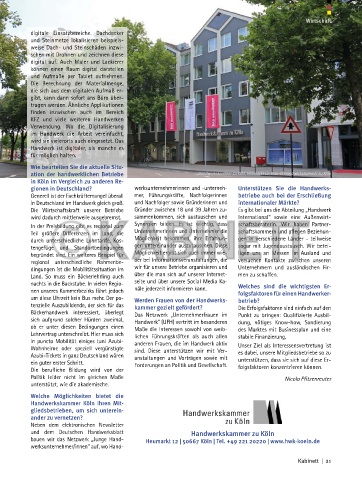 bauen wir das Netzwerk „Junge Hand- Heumarkt 12 | 50667 Köln | Tel. +49 221 20220 | www.hwk‑koeln.de